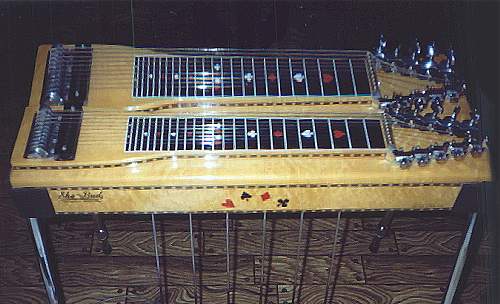 Sho-Bud Crossover D-10, 6 pedals, 1 knee lever (RKL). Blond maple finish. It's set up to E9 and C6, and the crossover mechanism switches the pedals and lever from one neck to the other. All original parts, never modified. I don't think this guitar was ever gigged much, because both the guitar and case are in really good shape. It's a classic. Price: US$900 ------------------ [This message was edited by b0b on 10-03-99] |